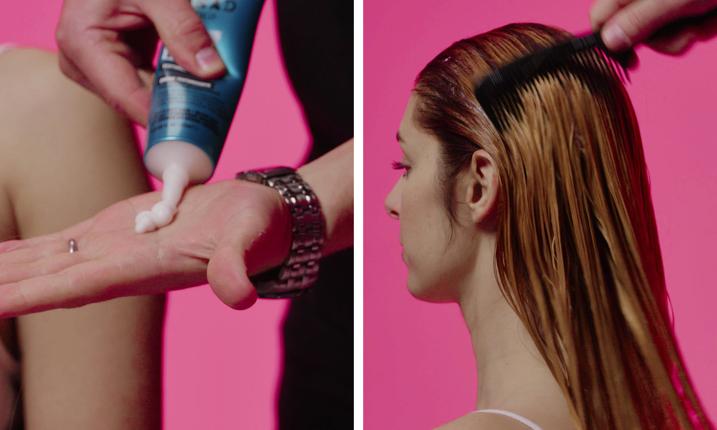 Start on damp hair. Apply Back It Up™ and comb through the hair for even distribution