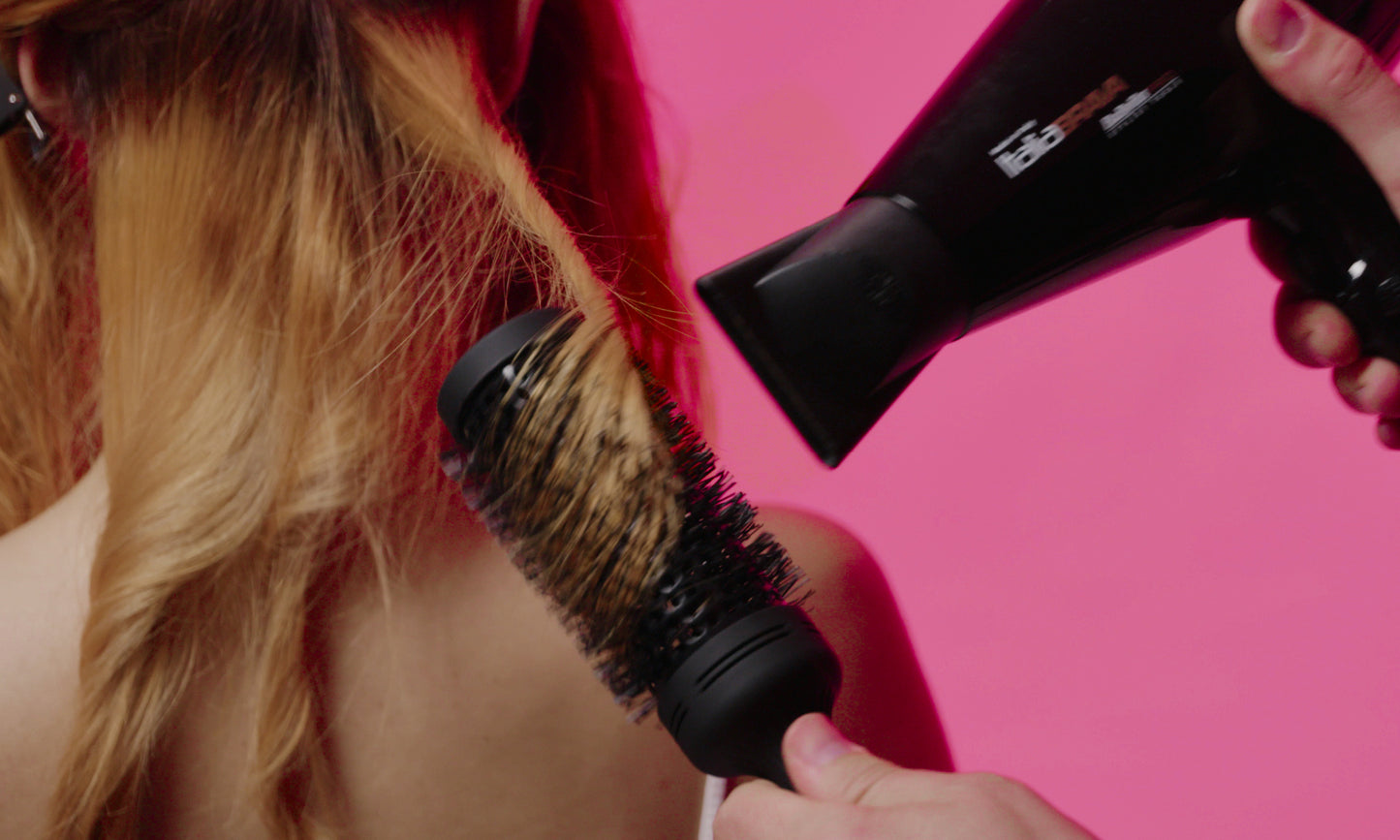 Use a large round brush to smooth the cuticle and twist each section to create movement.