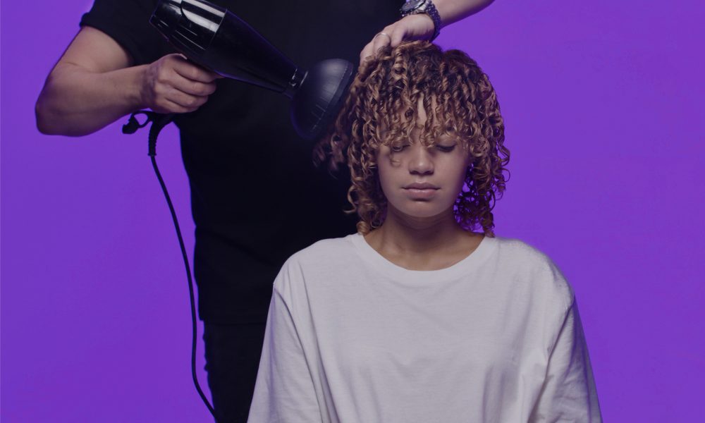 Blow-dry the hair with a diffuser.