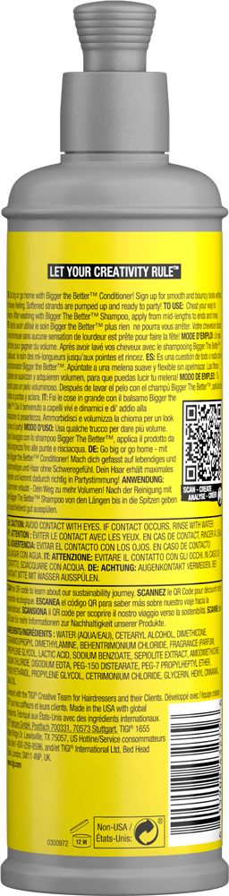 - Take hair volume to the next level with Bigger The Better™ Volume Conditioner. This lightweight conditioner leaves hair soft and bouncy. The conditioner moisturises, nourishes and softens hair without weighing it down.