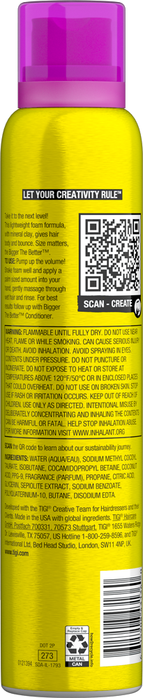 - Bigger The Better™ Shampoo has been developed in collaboration with our professional team as a breakthrough aerosol shampoo, which is a new and innovative way of gently cleansing hair. The foam format lasts up to twice as long as a standard shampoo and reduces water consumption. The volumizing shampoo is sulfate-free and lightweight, to ensure it doesn’t weigh hair down. It gently cleanses the hair and removes dirt and build-up, without stripping the hair, resulting in body and volume at the roots.