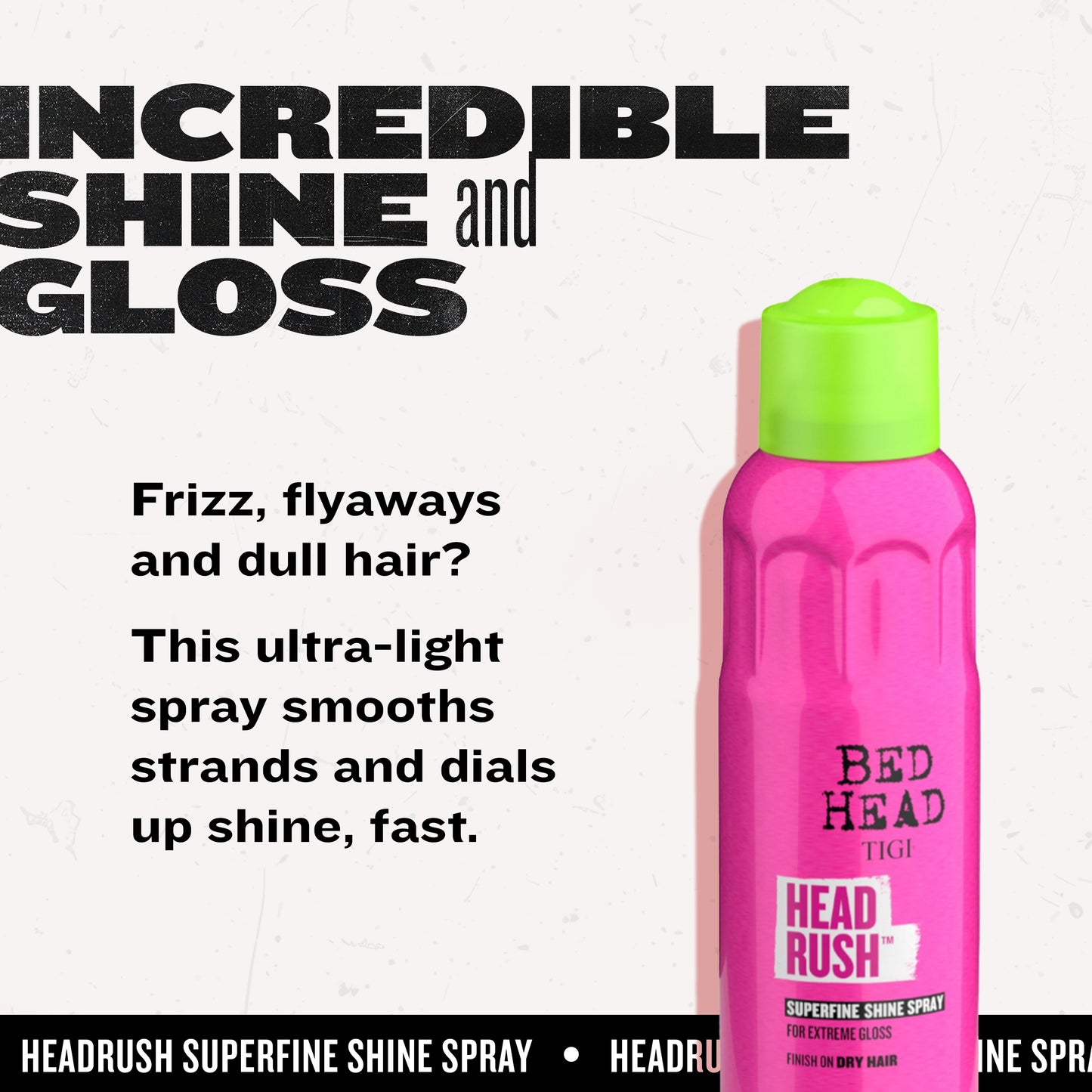 - Head Rush™ Shine Spray; new on the outside and just as epic on the inside. A powerful shiny formulation, not only designed with but used by salon professionals. Delivering salon results and salon experience at home.
