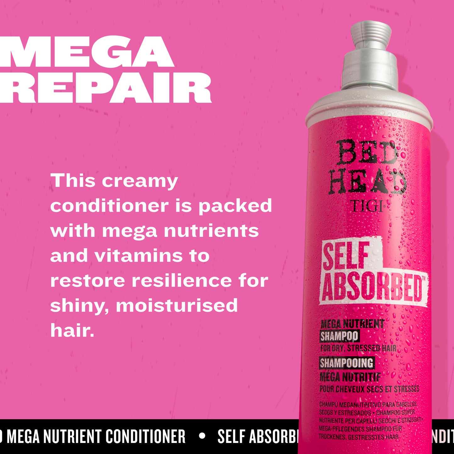 - Nourish, repair and strengthen hair with the Bed Head Self Absorbed™ Mega Nutrient Conditioner! This nourishing conditioner visibly repairs damaged hair, and strengthens weak hair from within. For super shiny, moisturised and conditioned hair!
