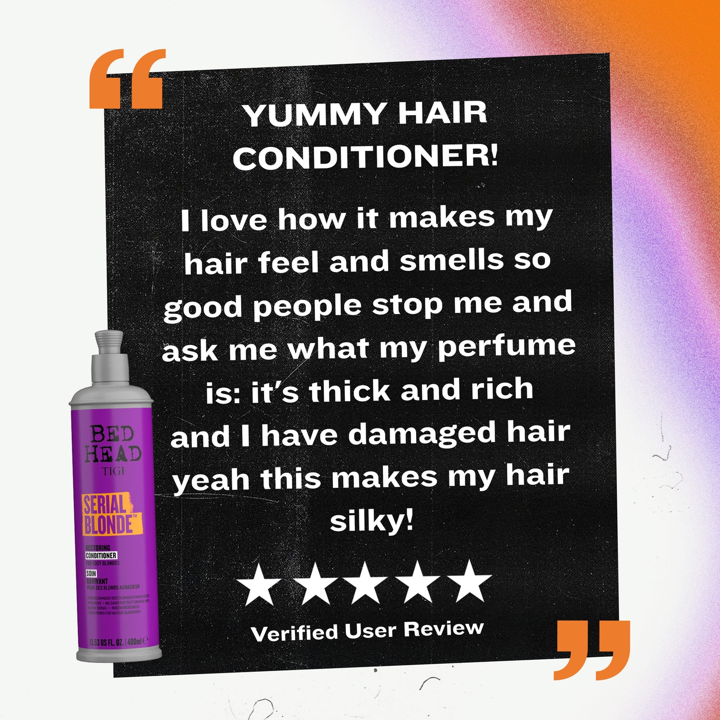 - The Bed Head color care range, with a Colour Protection System, has been tailored with professionals to care for and revive chemically treated hair and enhance color vibrancy. The Bed Head Serial Blonde™ Conditioner helps get blonde hair back to its brilliant best. The conditioner helps repair the damage, strengthen blonde hair, and protect hair from frizz and flyaways. The conditioner also moisturizes, softens, and conditions hair. For blonde hair that looks healthier and stronger!